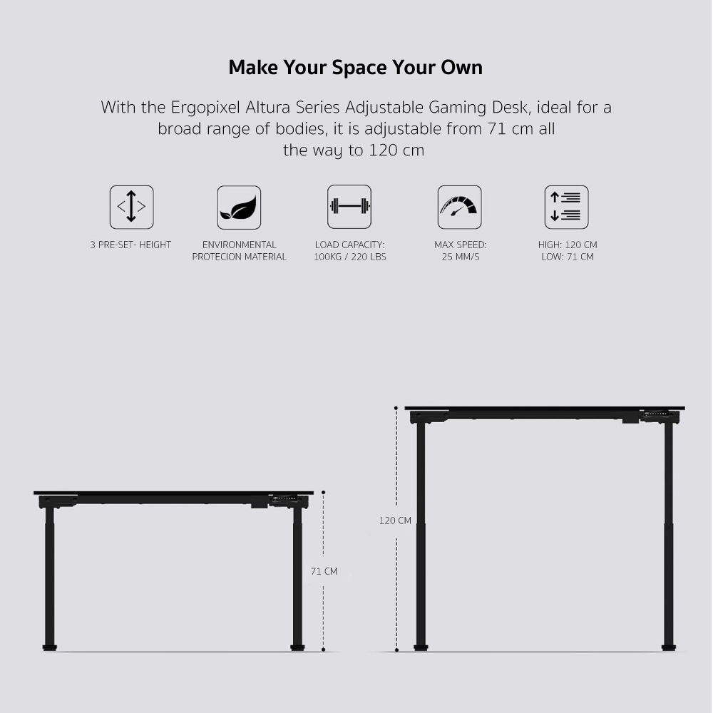 Ergopixel Altura Series Adjustable Gaming Desk Size XL 170 x 75 cm